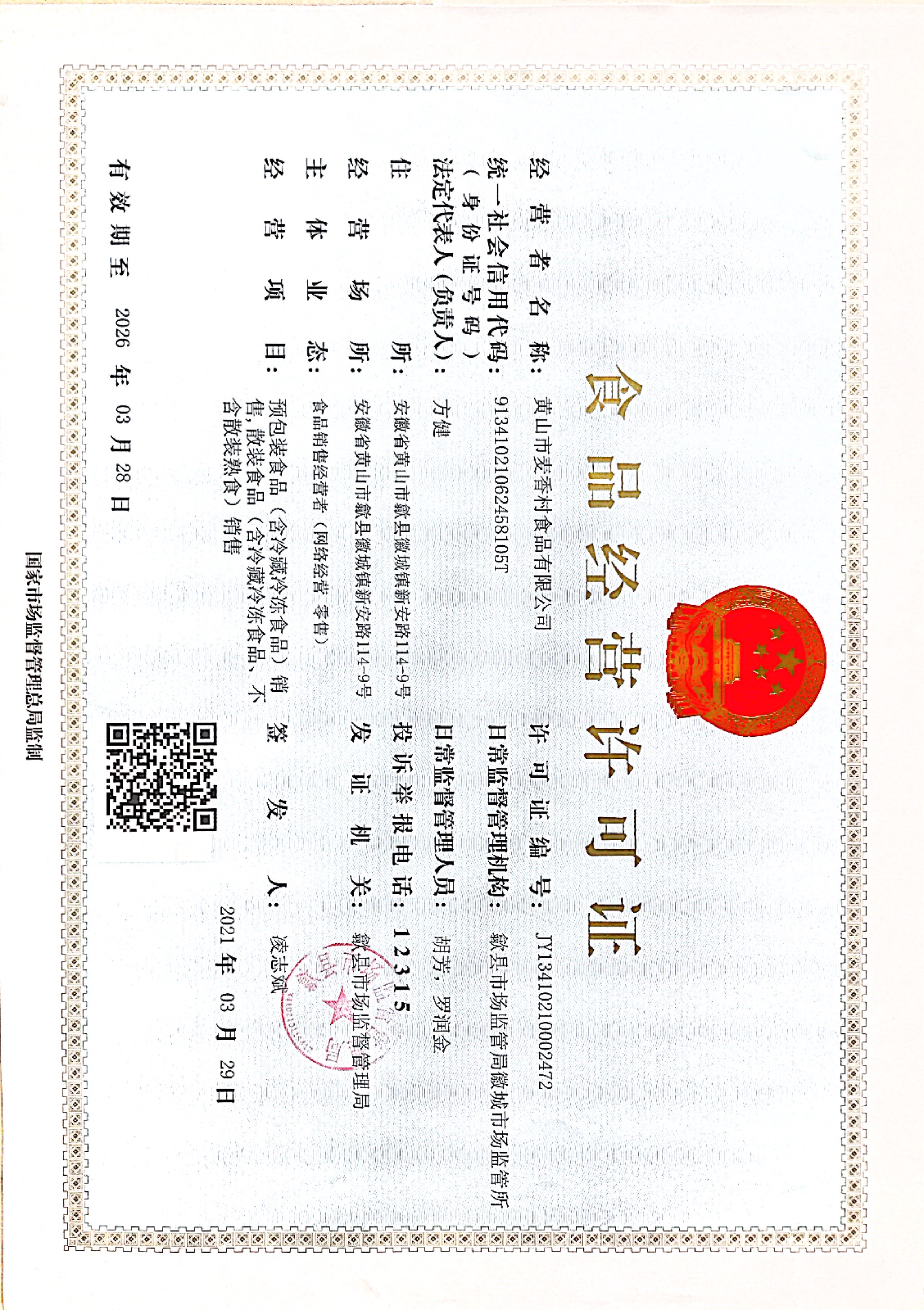 黃山市麥香村食品有限公司 版權(quán)所有 免責(zé)聲明 皖I(lǐng)CP備2022002499號-1 營業(yè)執(zhí)照 食品生產(chǎn)許可證 食品經(jīng)營許可證技術(shù)支持:網(wǎng)新科技(www.ibw.cn)